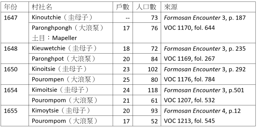 至於圭母子社和大浪泵社的戶口和人口數,雖然是眾所皆知的資料,在此還是再整理一次: