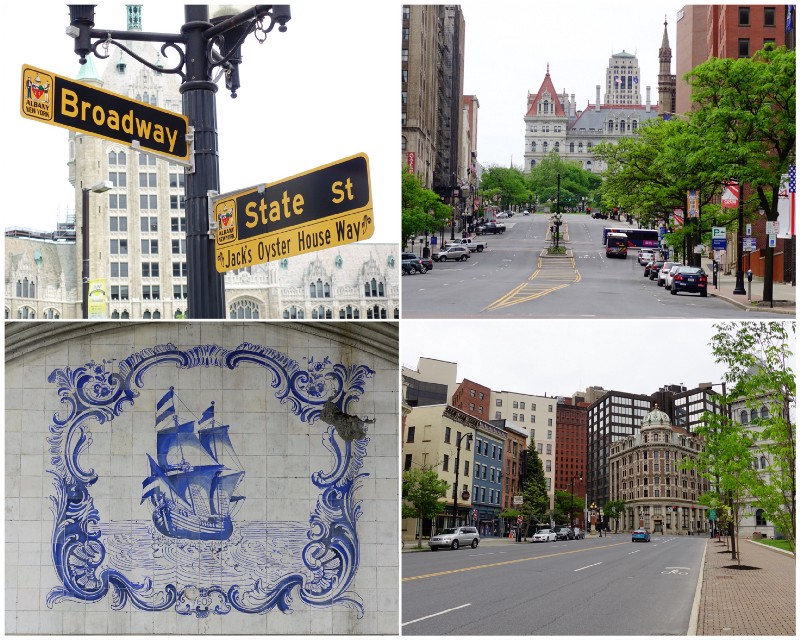 奧倫治城北側有一條延伸出去的Breedweg,現在也叫Broadway,連結軍事政治的奧倫治城與商業居住的河狸莊。沿著Broadway往北走,右手邊高速公路的涵洞下有紀念1609年半月號航行至此的Delftware青花陶磚裝飾。再往前走,可以看到壯麗的紐約州立大學行政中心(1978年遷入)。行政中心旁是Broadway和State Street的丁字路口。在這個寬廣的路口中央,曾有一座荷蘭教堂,曾經是河狸莊的信仰中心。State Street是一條坡道,通往另一個英治時代奧巴尼的行政中心斐特烈城(Fort Frederick)。位於高地的斐特烈城可以俯瞰以荷蘭殖民者後裔所形成的城鎮,可說是展現統治權力的配置。現在此處依然保持其政治功能,是紐約州政府的所在地(New York State Capitol),但各機關已經擴展到鄰近街區,並在1959年至1976年間建立充滿現代主義風格的帝國廣場(Empire State Plaza)。位於軸線末端的文化教育中心,是紐約州立圖書館暨檔案館之所在地,也是現在新尼德蘭歷史研究之重鎮。