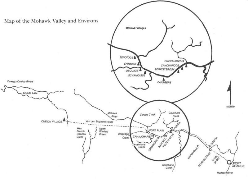 在新尼德蘭,現存最早對於美洲原住民的報導,來自1634年底至1635年初外科醫生Harmen Meyndertsz. van den Bogaert在奧倫治城西方的莫霍克人(Mohawk)與奧奈達人(Oneida)領域內跨年的探險日誌。這次探險的主要目的是要探查位於加拿大的法國勢力,是否有可能威脅到荷蘭人在新尼德蘭的毛皮貿易。類似的日誌在當時應該留下不少,畢竟新尼德蘭處於新英格蘭的英國與加拿大的法國勢力中間,必須爭取原住民的合作才能保持毛皮貿易的順利。但因為荷蘭西印度公司的檔案在1676年公司重整時大批廢棄,早期檔案只有落入私人手中的抄本得以倖免,van den Bogaert的日誌便是這樣才得以流傳至今。在這份日誌中,他紀錄了美洲原住民的村落建築與祭祀狀況,可說是現存對紐約州原住民最早的民族誌報導。