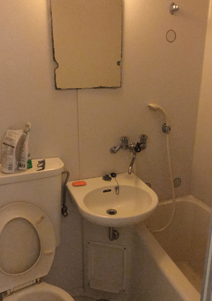 但設備的數量並不是宿舍的問題,設備的位置和內容才是問題。位於房間外面的共用廁所,讓我每次上廁所時都必須整裝才能出門,在深夜半夢半醒中把睡衣換下再穿上全套衣物絕不是好玩的事。如果你平常就習慣邋邋塌塌地穿著T-shirt、短褲、拖鞋就走出門,也不怕被其他人看到,上述問題就不會是你的問題,畢竟廁所每層樓有兩間,連宿舍大門都不必出。但入秋以後廁所的溫度又是另一個挑戰。十一月以後溫度急速下降,廁所又沒有暖氣,在不到十度的廁所多待一分鐘都很痛苦。特別是腸胃不適的時候,冰冷的廁所會讓人懷疑自己還有沒有痊癒的機會。感應不良的自動水龍頭也讓許多人不洗手就走出廁所,真不敢想像廁所的門把有多髒。