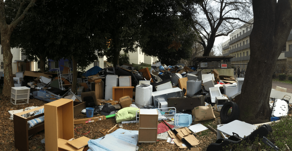 對其他國際學生來說,除了宿舍的硬體設施,最大的問題可能是垃圾分類。剛開學的幾天,留學生見面時總是會討論一下垃圾該怎麼分類的問題。但垃圾分類對我來說沒有太大的問題,畢竟平常在台灣就有垃圾分類,在筑波只要照著辦理入住手續時,宿舍管理處的老師給的筑波市垃圾分類指南來做就好。同時發下的還有筑波市指定垃圾袋和廢紙回收袋。可燃垃圾要用筑波市指定的垃圾袋裝,用完再去筑波市內的便利商店、超市、藥妝店買就好。比名片大的一般廢紙裝在筑波市指定的回收袋,容量頗大,我裝了半年還沒滿。瓦楞紙要分開處理,不算一般紙類,但用來包裝電器的瓦楞紙箱和裡面的保麗龍最好留下,處分電器時會用到。利樂包類的飲料紙盒要洗淨剪開,攤平疊起來回收。各區宿舍的管理室旁邊就有回收飲料紙盒的回收箱,把紙盒整理好成一整疊拿去回收箱丟就好。含有無法分離金屬的垃圾,像是藥丸的鋁箔包裝,都屬於不可燃垃圾。不可燃垃圾和資源垃圾要放在透明或半透明的袋子中排出,沒有指定袋,用便利商店的塑膠袋(レジ袋)就可以了。在日本購物時幾乎都會裝袋(但筑波市內的超市目前配合市府政策不提供免費塑膠袋),通常只會煩惱家裡不要的塑膠袋太多,不會煩惱無塑膠袋可用。不同種垃圾的清理日期不一樣,原則上需要參考垃圾分類指南的日曆,在清理該類垃圾的當天早上八點前將垃圾放在集中定點。筑波大學的宿舍民從來不管這些,只會把垃圾包好分類放在收集處。丟垃圾方便大概是筑波大學宿舍唯一比校外公寓好的地方,但也有很多人把方便當隨便,平砂宿舍5號棟前的垃圾收集處旁從我九月抵達時就有一座小垃圾山,堆了些廢棄家具和大家電。之後這座垃圾山不斷成長,到我離開的2015年3月底,這座垃圾山已經成長數倍,連輪胎、瓦斯爐等奇怪的圾垃都出現,還幾乎堆到道路上了。我自己用過的家電在三月底交給校園家電家具回收再利用服務「EcoCycle」(えこさいくるん)處理,現在應該已經交到新生手上了吧。