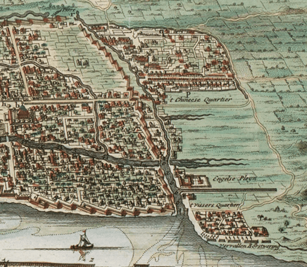 The tokos established by the Europeans in Southeast Asia served several functions: accommodation, storage, and transshipment. Transshipment here refers to the mode of operation whereby precious metals, commodities, and spices brought by European merchant ships or Asian traders from all over Asia were transported back to Europe or other Asian markets when the wind direction is favorable. The most important toko for the early modern Europeans in Southeast Asia was the Kasteel van Batavia, situated in today’s Jakarta, Indonesia. It also served as a residence for the Governor-General of the Dutch East Indies. As the Dutch East India Company (VOC) expanded, the Dutch set up trading posts throughout East Asia. Some of these posts were witnessed by Hokkien speakers, who recorded these buildings as tokos in historical sources.