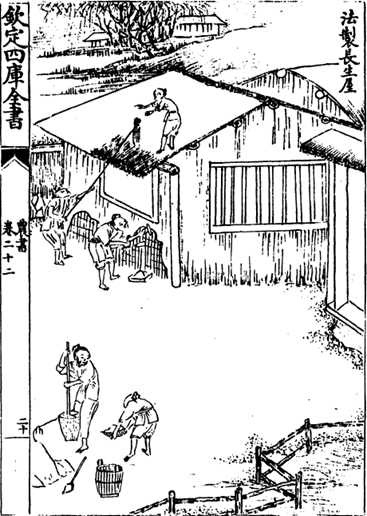 In fact, the word toko is commonly found in novels written in China during the Ming dynasty (1368-1644), though authors usually assumed that the reader knew the meaning of toko and provided no further explanation. Fortunately, throughout the Yuan (1271-1368) and Ming dynasties, toko appeared to be more popular as a name for buildings in the grassroots level of society, though not among the upper class. Two historical sources outlined the advantages and construction methods of a toko. The first was The Book of Agriculture 農書, written by Wáng Zhēn 王禎 in the early 14th century. In it, the author described a toko as a building with wooden structures reinforced by adobe that was used by farmers as a fireproof warehouse. It was also known as a “house of longevity” due to its durability and resistance to fire. Wáng Zhēn believed that even if not every house in a city were built with this type of fireproof material, having at least one house built this way would obstruct fire from spreading throughout the city.