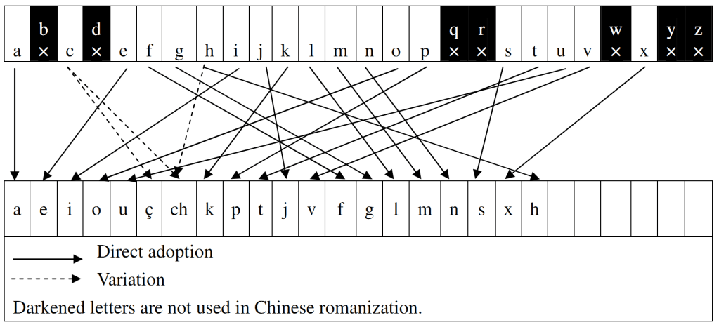 圖 4.5金尼閣調整過的羅馬字母順序與原順序之比較
